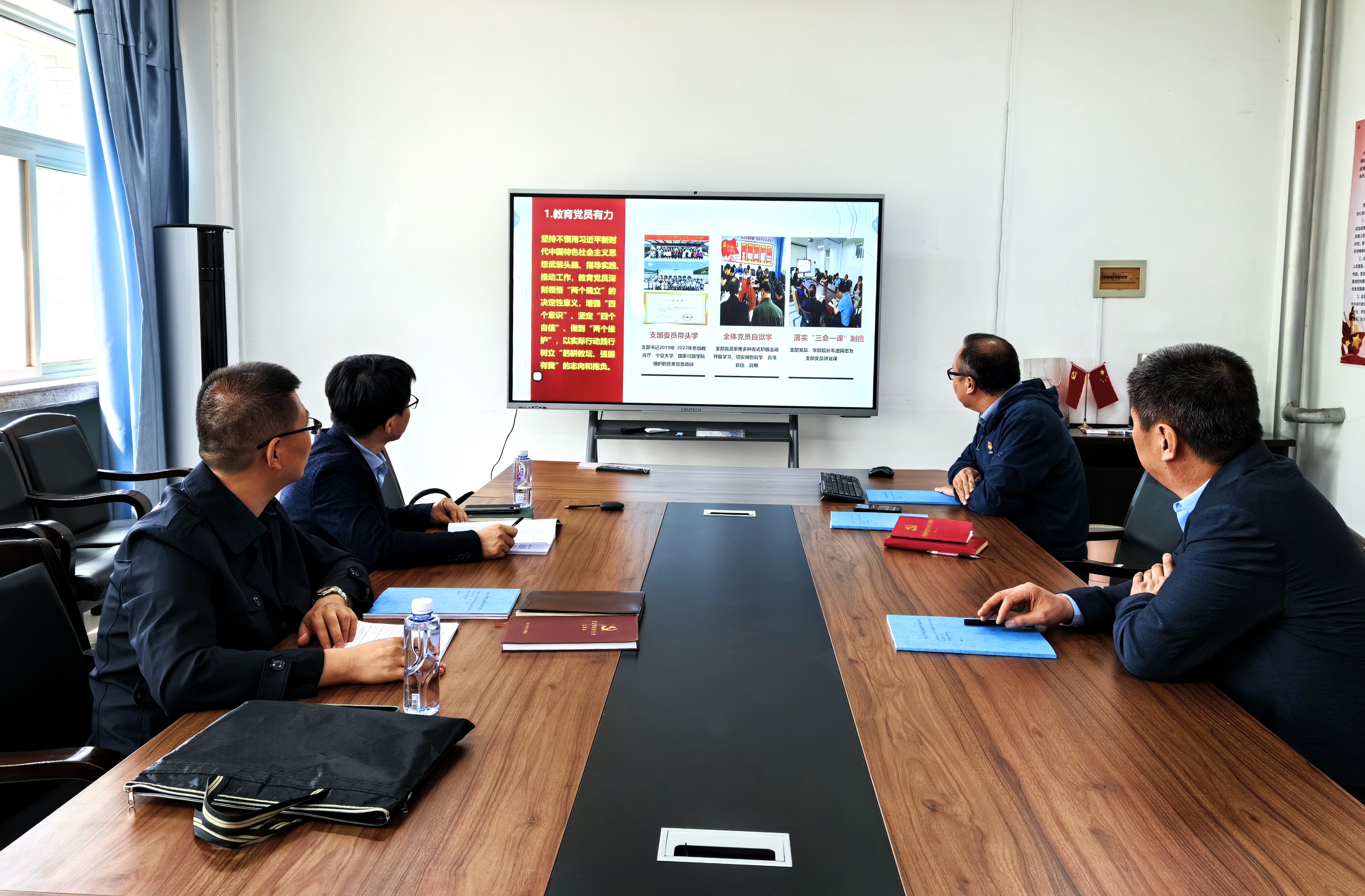 调研验收样板党支部工作开展情况。学院党总支书记何彦平、电子与通信工程系党支部书记刘平参加验收会。