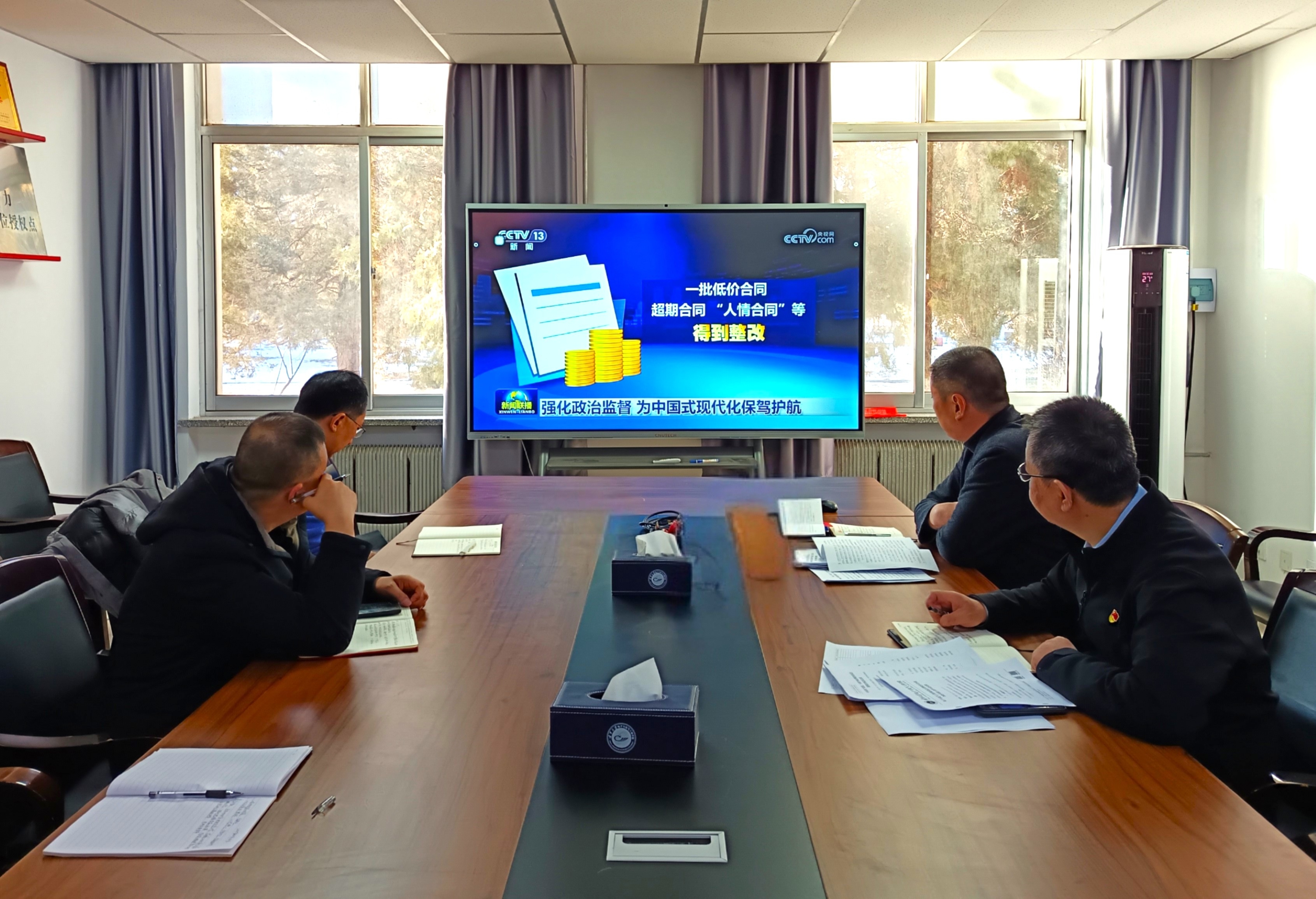 会上,专题传达学习了《坚持用改革精神和严的标准管党治党 坚决打好反腐败斗争攻坚战持久战总体战》,传达学习了《中国共产党第二十届中央纪律检查委员会第四次全体会议公报》,与会人员集中观看学习《强化政治监督 为中国式现代化保驾护航》视频。