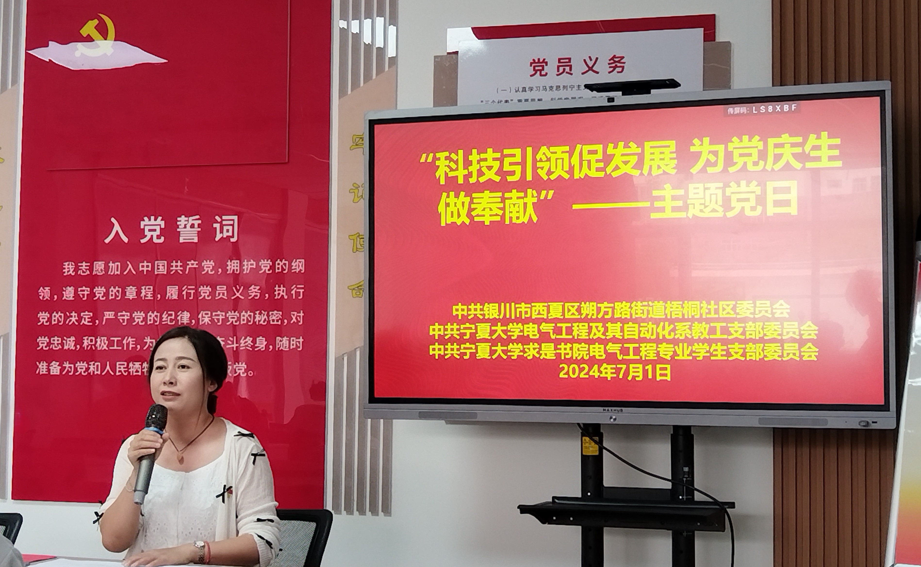 【电院讯 宋娟/文、图】为进一步强化党建引领,深化“高校+社区”合作共建模式,加强校社资源融合共享,推进校社党建工作创新提升,7月1日,Happy漫画 电气工程及其自动化系党支部联合求是书院电气工程专业学生党支部赴西夏区朔方路街道梧桐社区开展共驻共建活动。社区党委书记于婷、西夏区科协科普辅导员马晓云、电气工程及其自动化系党支部书记宋娟、求是书院电气工程专业学生党支部书记高文静及学生党员参加活动。