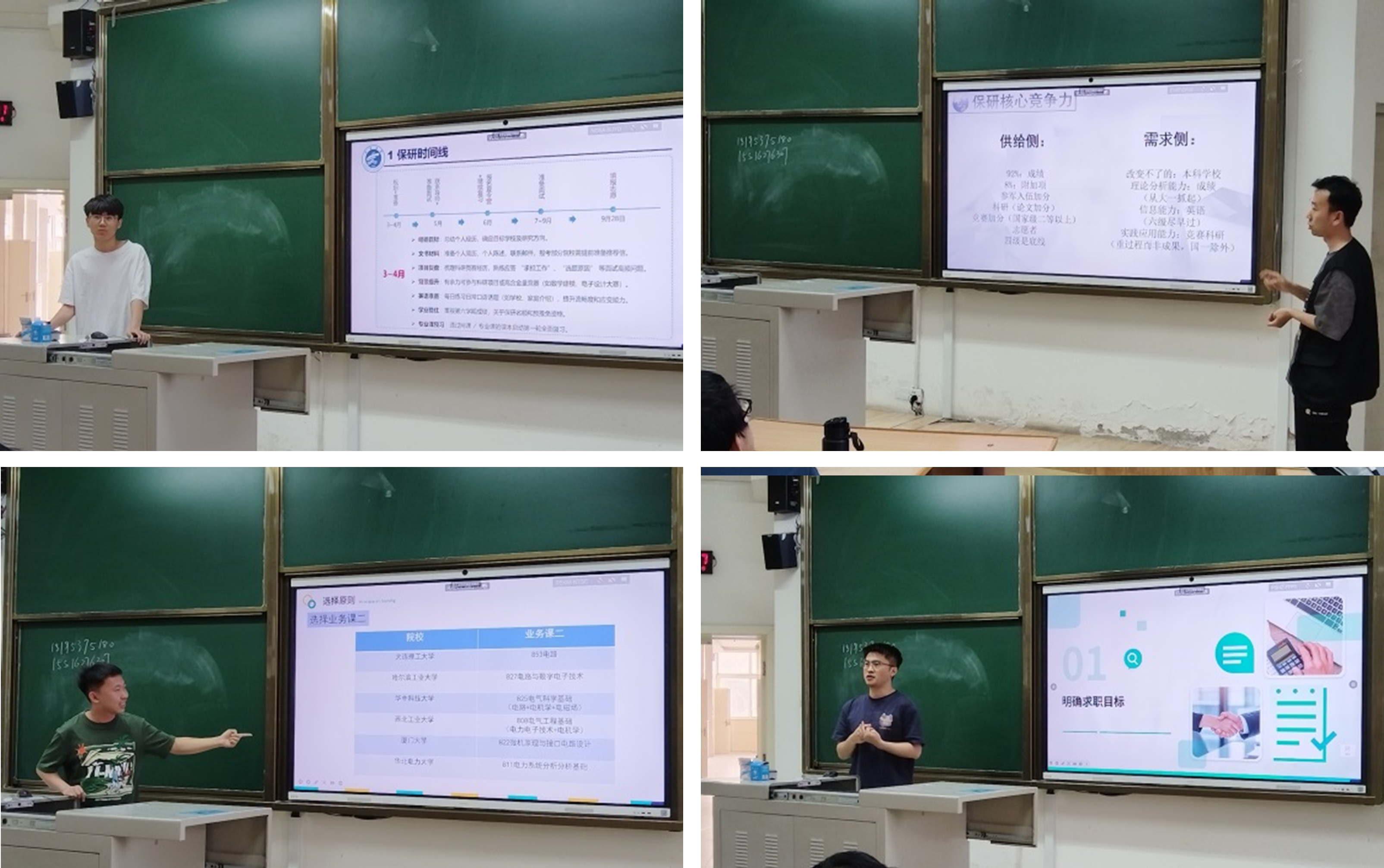 2021级电气工程及其自动化专业毕业生马领、胡一鸣、王子游、马龙、马维军、路星、张游贤、喜清泉,从推免保研、考研、备考国网、备战学科竞赛等维度做了分享,鼓励低年级同学们要从知识的“共鸣人”成长为国家工业发展的“共行人”,从“行”出发,敢于迎难而上,散发青春热情,勇担时代责任,将科技兴国的伟大抱负内化于心,付诸于行,努力成为一名新时代的“追梦人”!