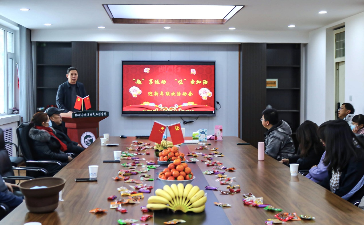 在怀远校区博远楼举办“‘趣’享运动·‘味’电加油”2024年新年联欢活动会。数理与信息学部党委书记常海波、校工会副主席王红枫与学院教职工齐聚一堂,共同迎接新年。