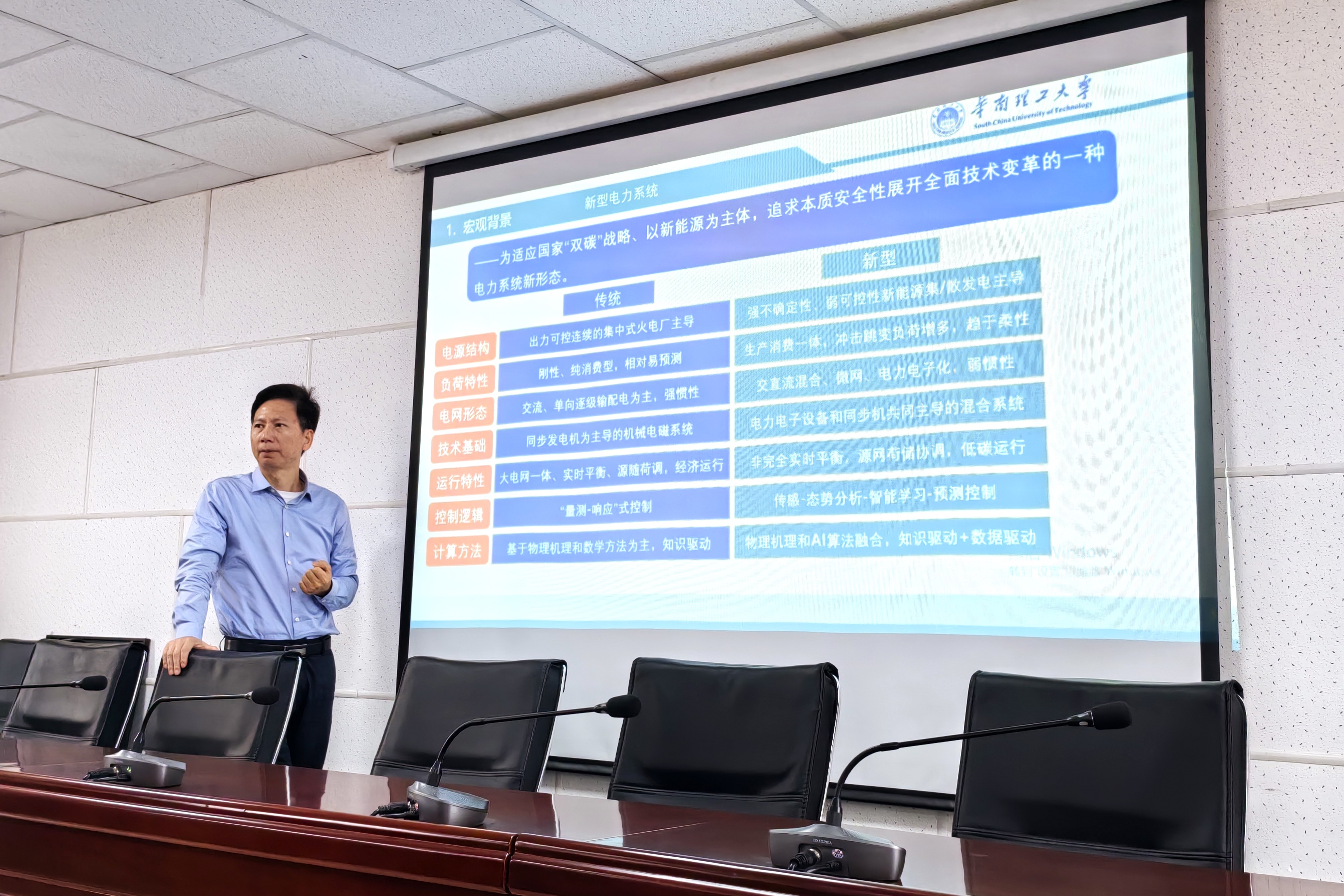 控制工程领域专业学位研究生做《新型电力系统新在哪里》学术报告。报告会由电气工程学科负责人杨国华教授主持。
