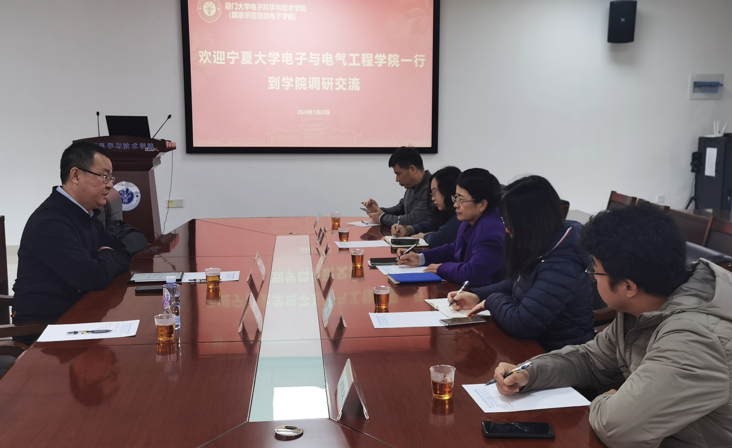 走访交流中,厦门大学信息学院、电子科学与技术学院和航空航天学院的领导分别介绍了学院的建院历史、学科建设、师资队伍、科学研究、人才培养、产学研合作及优势特色,并表达了在人才提供、人才培养、科研合作方面的合作共识。孙学宏介绍了自治区和学校的人才政策,并从学院学科建设、人才培养、科学研究和师资队伍建设等方面介绍了学院的基本情况以及学院发展及亟待解决的人才问题,他表示 ,此行目的旨在调研厦门大学相关学院的工作经验,增进双方交流合作,进一步加强学院师资队伍建设、提升科研服务能力和人才培养质量,推动学院高质量发展。