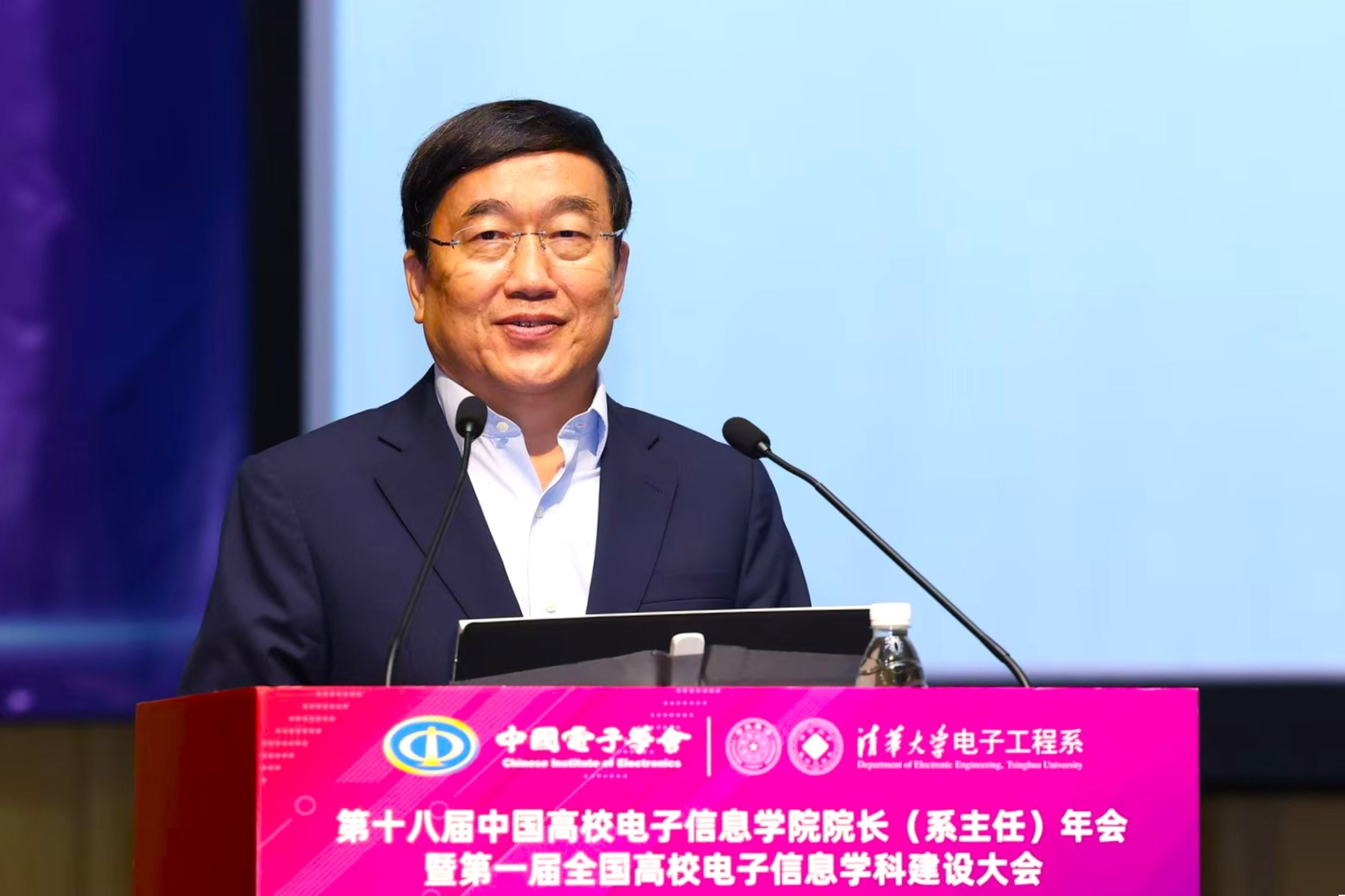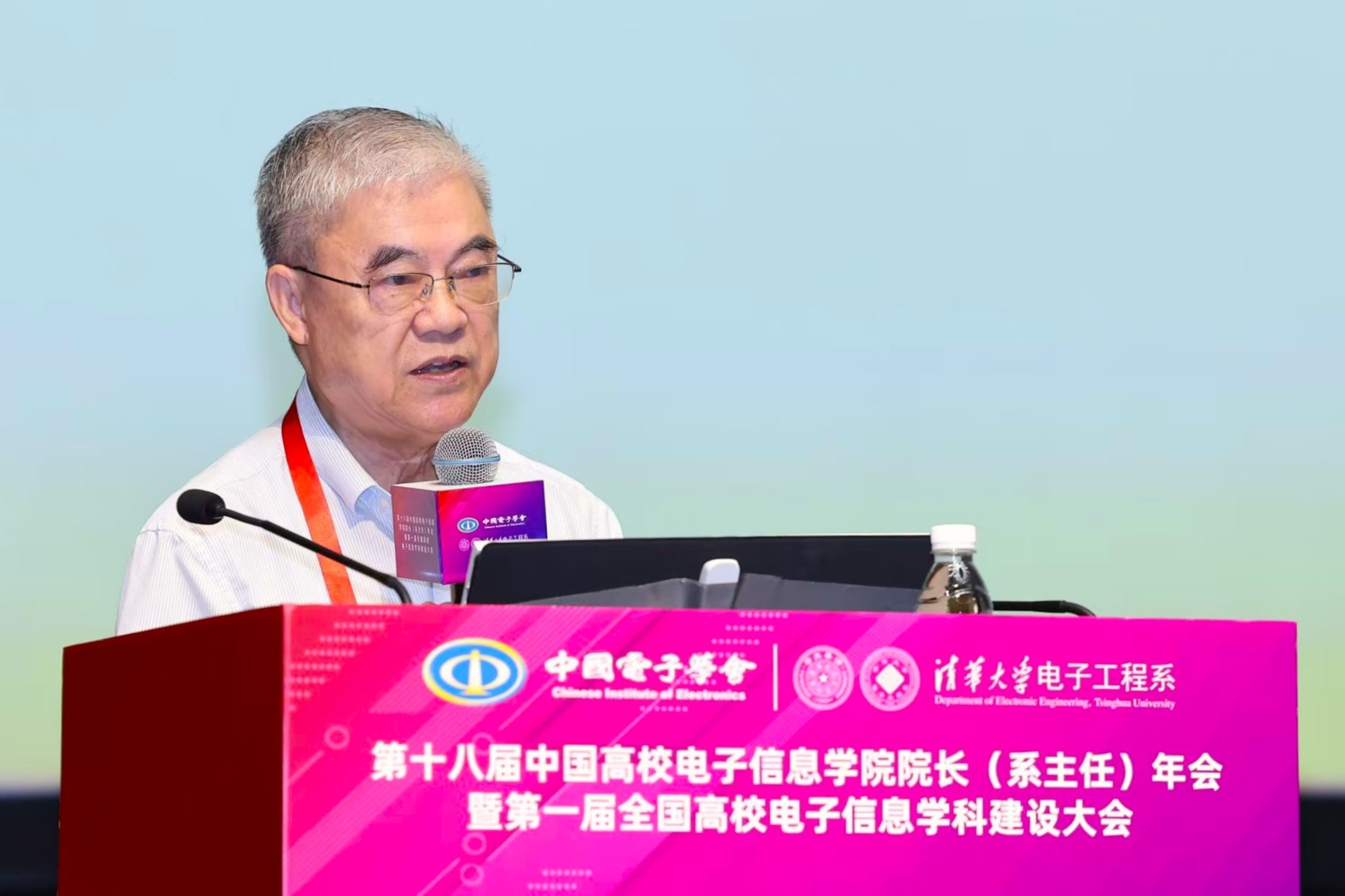 中国工程院院士、西北工业大学党委书记、建设委员会顾问委员会主任委员李言荣对学科建设委员会的成立表示祝贺,并指出了委员会作为交流、合作和共享平台的重要性。他表示,委员会依托中国电子学会,要聚焦学科方向凝练、人才培养、师资队伍优化,推动电子信息学科高质量发展。他强调,面对电子信息技术的快速发展及其对我国各行各业的深远影响,学科建设需紧抓人才培养与科技创新,要聚焦“1-0”的底层技术原理研究,在现有技术基础上深入探索根本性技术逻辑,以支撑未来的“0-1”原始创新,契合国家科技创新需求,实现科技自立自强。