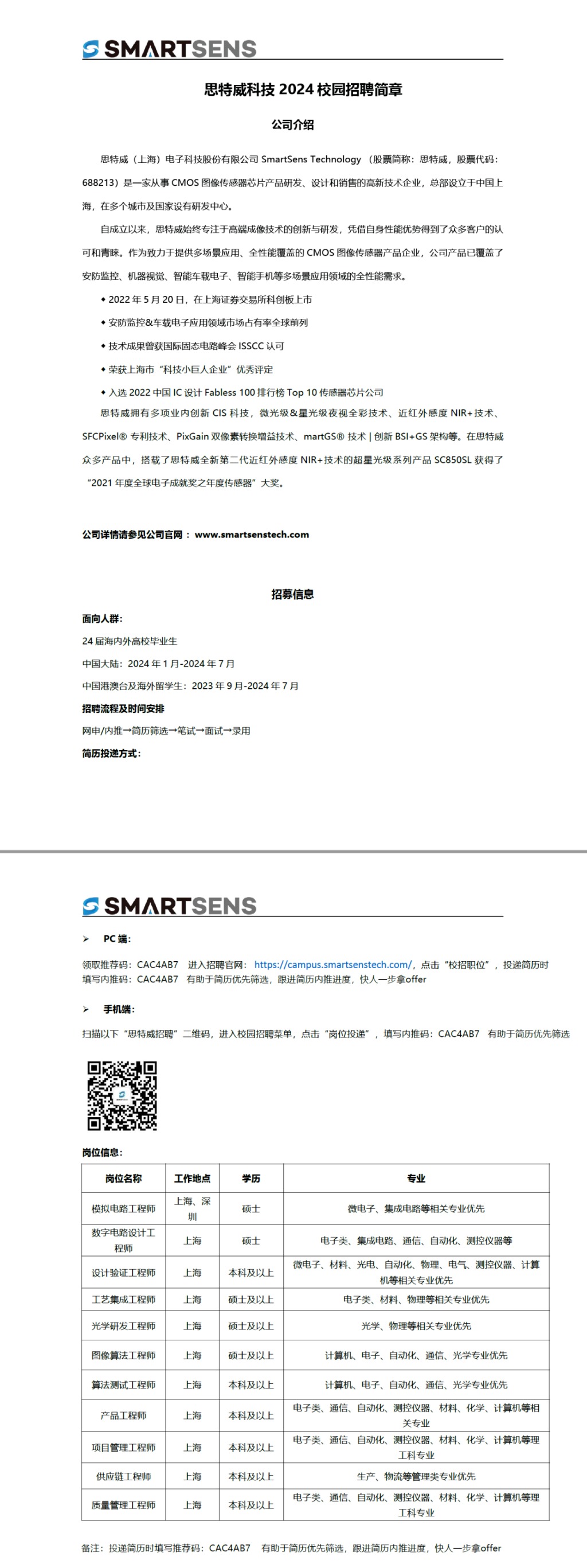 1、领取推荐码:CAC4AB7 登录官网投递链接://campus.smartsenstech.com/