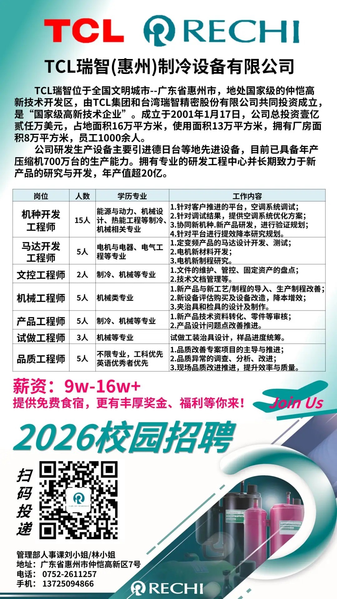 TCL瑞智(惠州)制冷设备有限公司校园招聘宣讲
