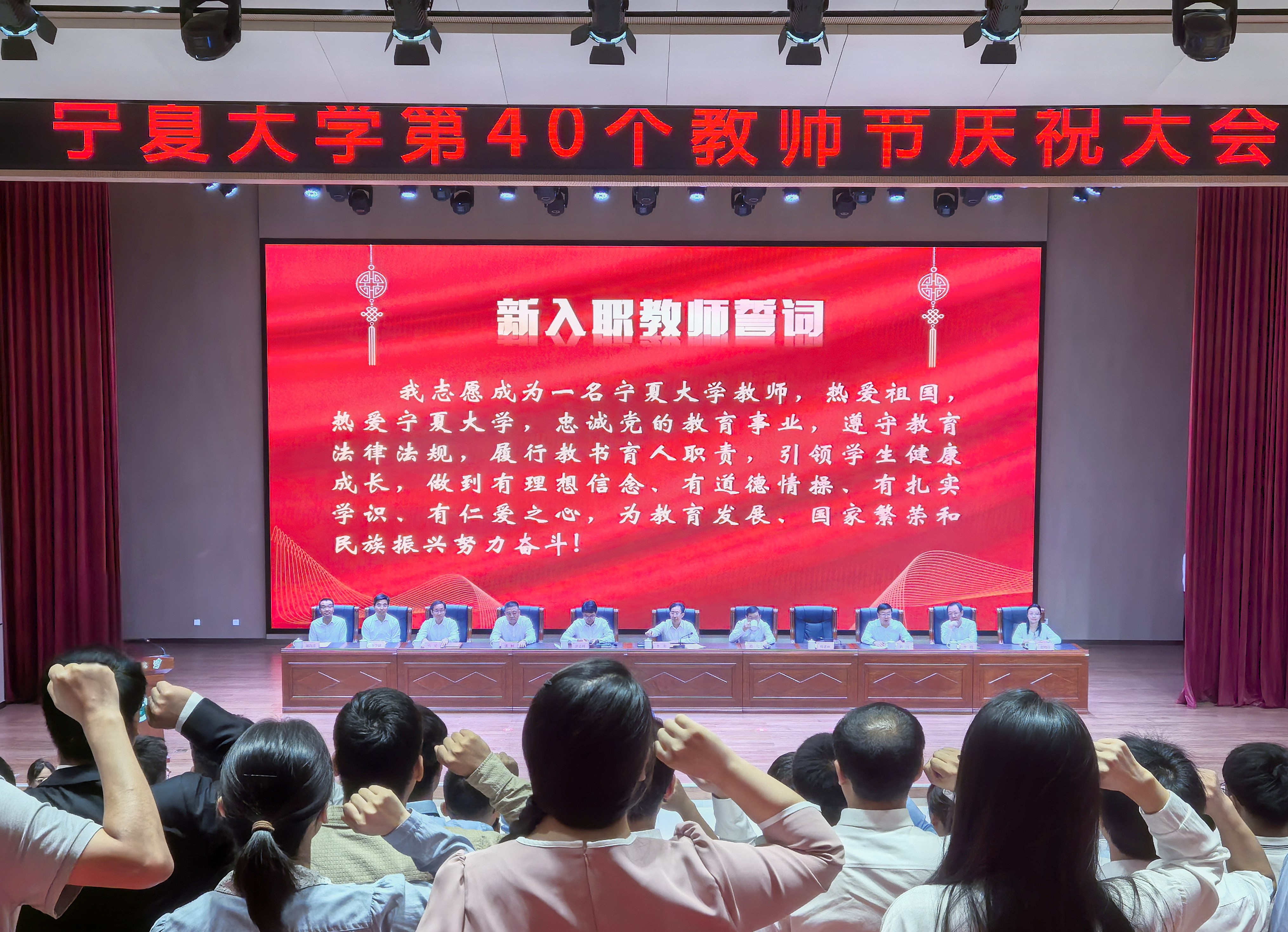 颁奖仪式后,举行了新入职教师入职宣誓仪式,地理科学与规划学院本科生兰豪辉同学代表全体学生向教师节献词,国家重大人才工程入选人员代表、数学统计学院韩芳老师,新入职教师代表、化学化工学院李一然老师,荣休教师代表张轶炳老师,获奖教师代表、农学院顾欣老师先后深情发言。