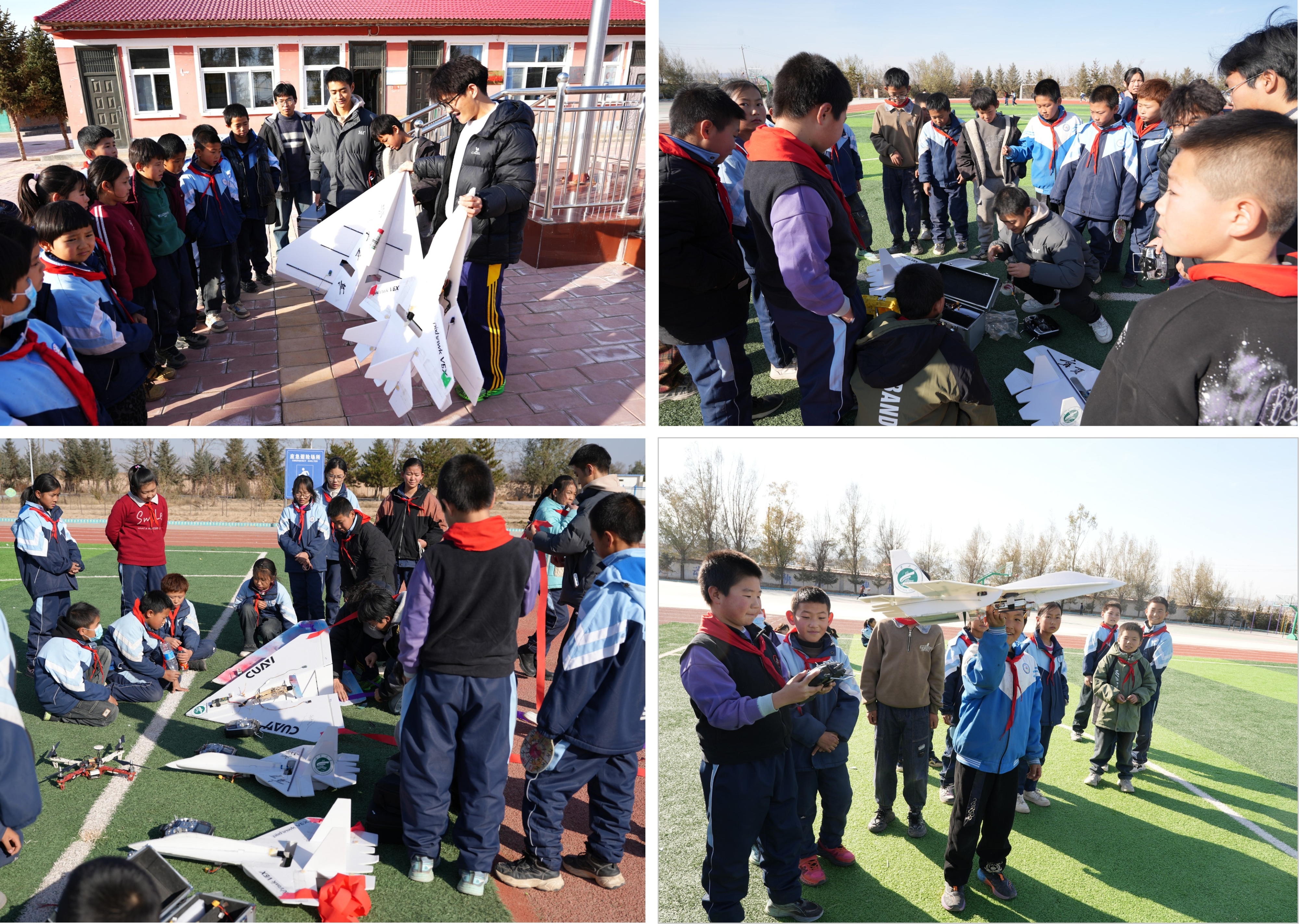 航模队为马庄小学的师生们带来了一场精彩纷呈的飞行器展演,伴随着螺旋桨的嗡鸣声,各类航模灵活升空、俯冲、盘旋,在空中翱翔,激发了孩子们对科学技术的浓厚兴趣与无限向往。