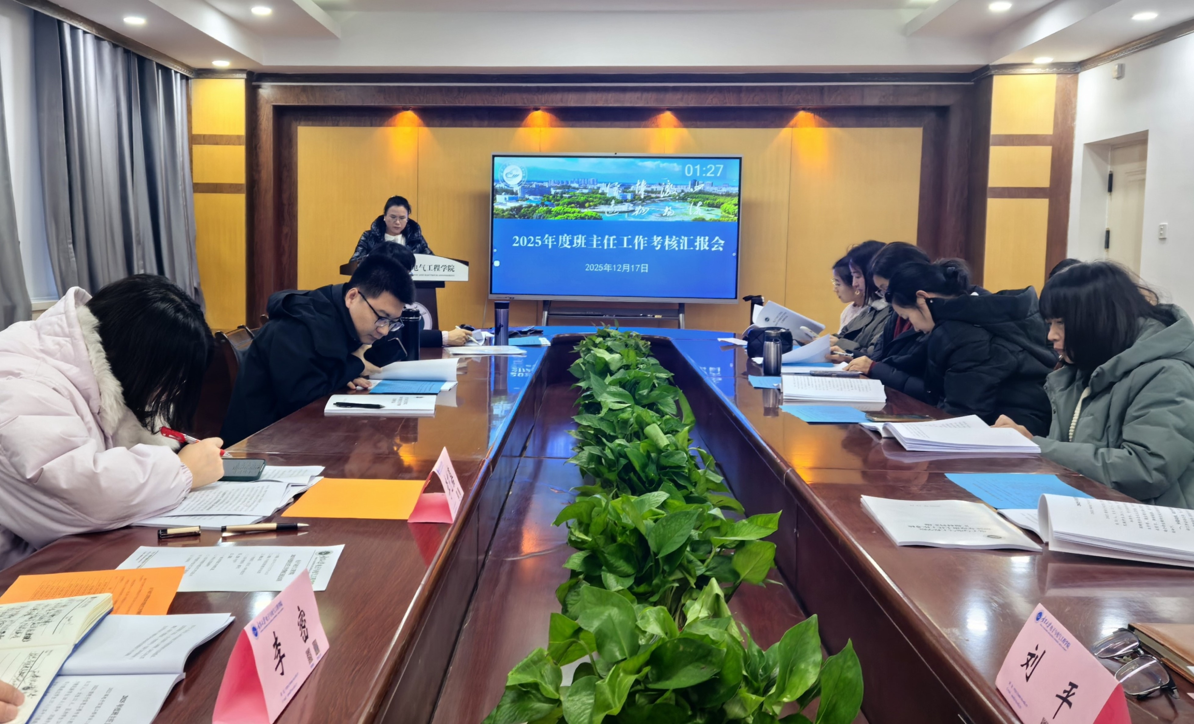 在怀远校区德言楼召开2025年度班主任工作考核述职评议会。会议由学院党总支书记何彦平主持。