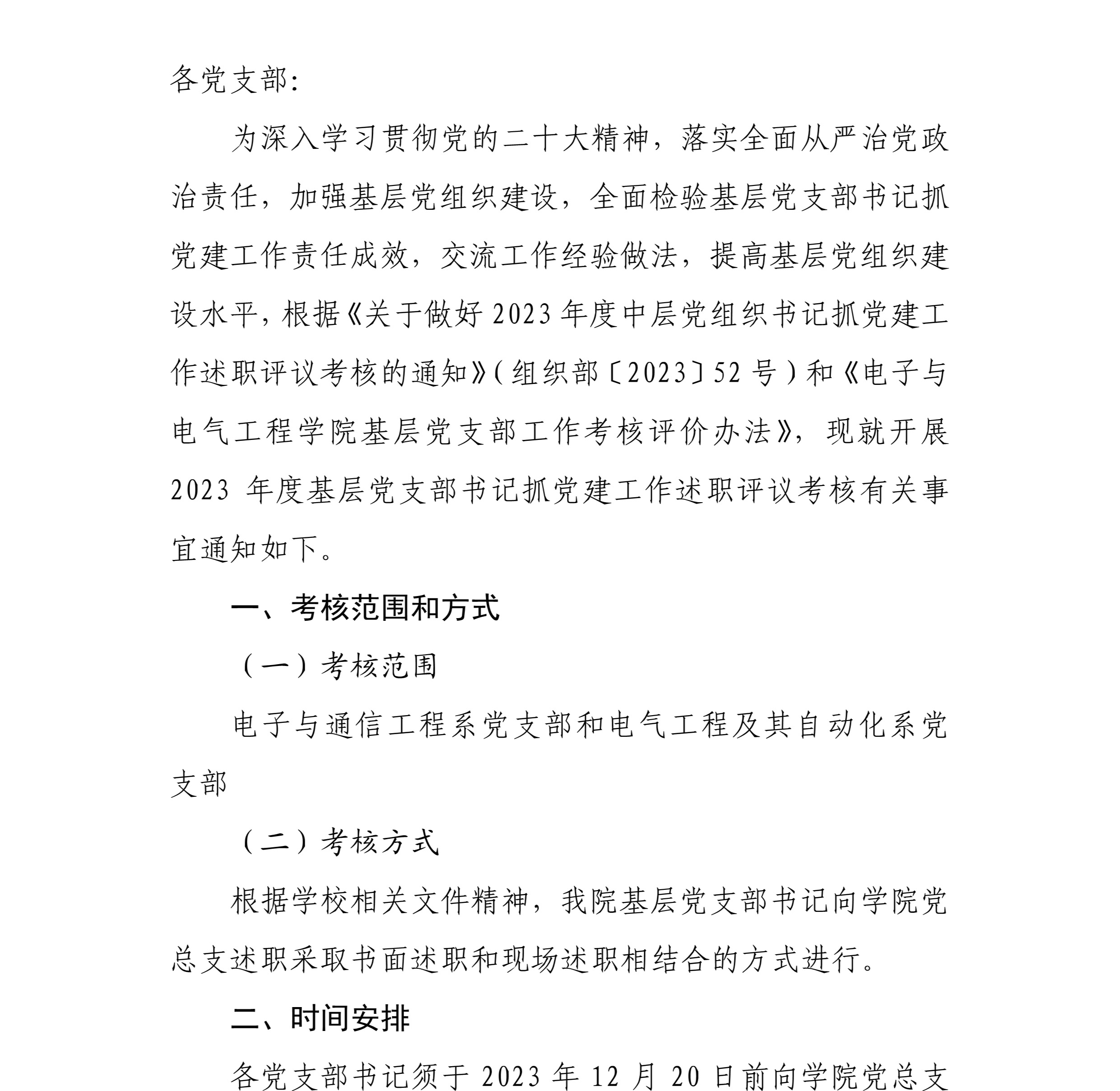 关于做好2023年度基层党支部书记抓党建工作述职评议考核的通知