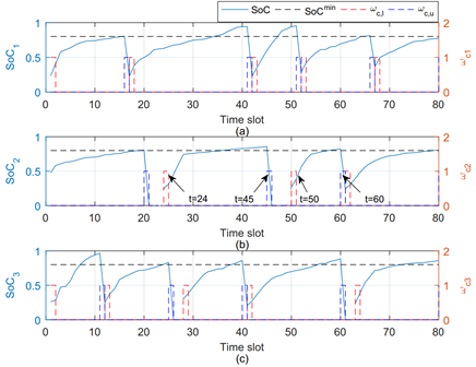 图3 电池充电模块中充电槽内电池的荷电状态演化过程
