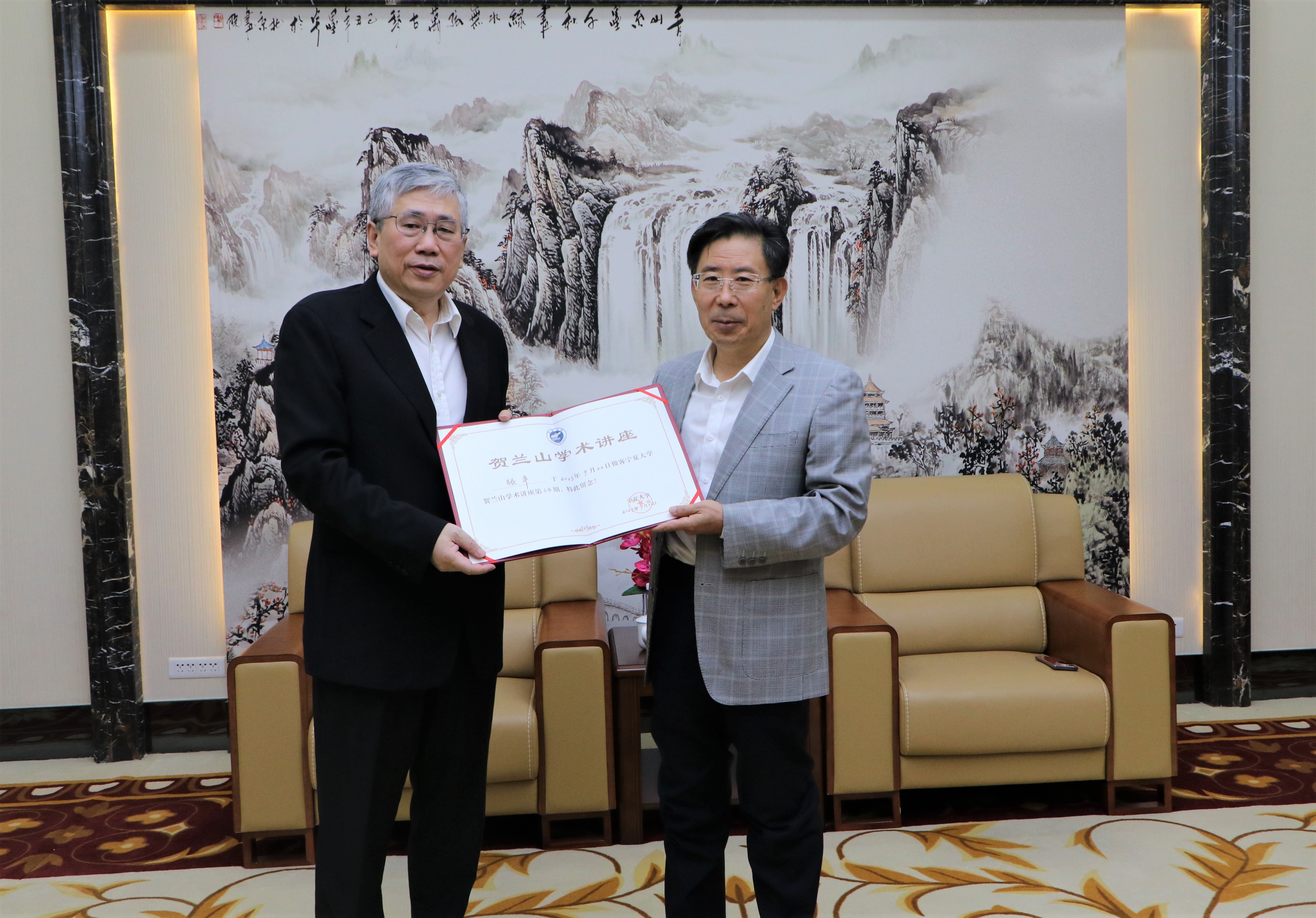 的发展建设多提宝贵意见,并为其颁发了贺兰山学术讲座证书和纪念品。校党委常委、副校长刘炎胜陪同会见。
