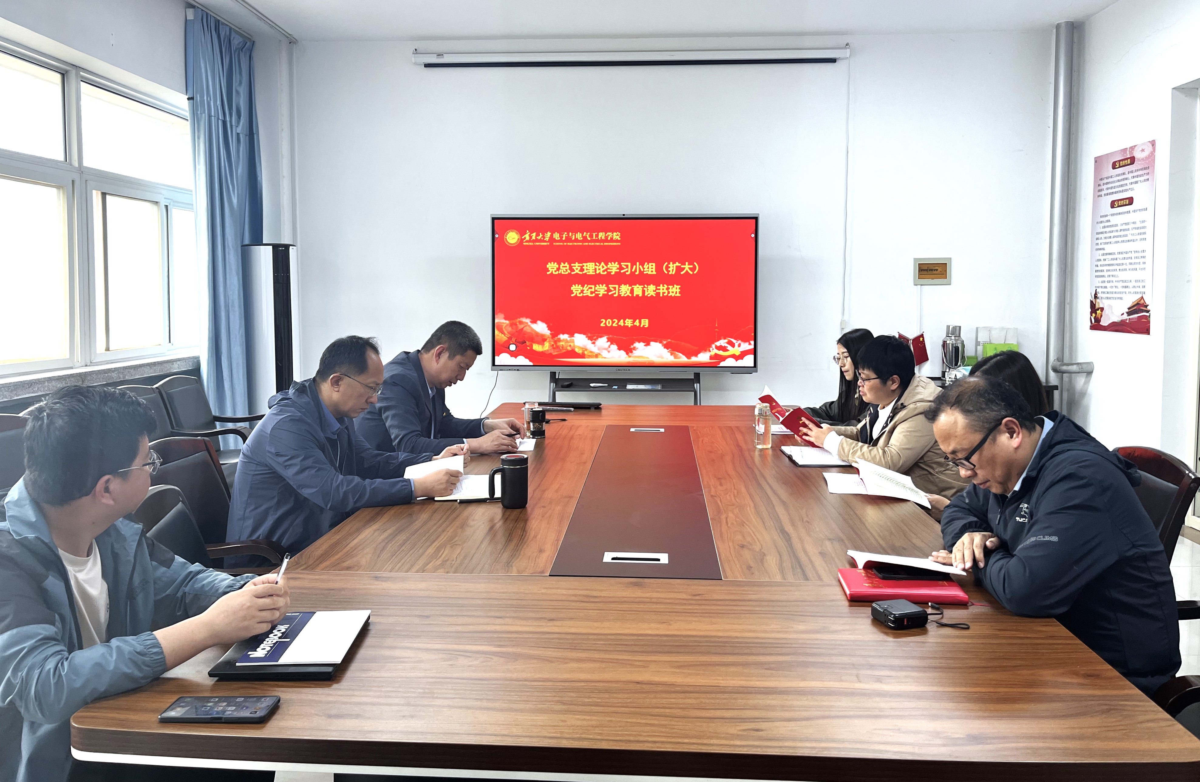 【电院讯 刘平/文 马占红、万艳妮、韩腾/图】4月25日-30日,根据学院党总支党纪学习教育工作安排,Happy漫画 举办党纪学习教育集中学习读书班,集中两天时间,采取领读带学、个人自学、视频辅导、警示教育、研讨交流等多种方式,原原本本、逐章逐条研读了《中国共产党纪律处分条例》。学院党总支理论学习小组成员、教工党支部委员、各系正、副主任参加读书班。