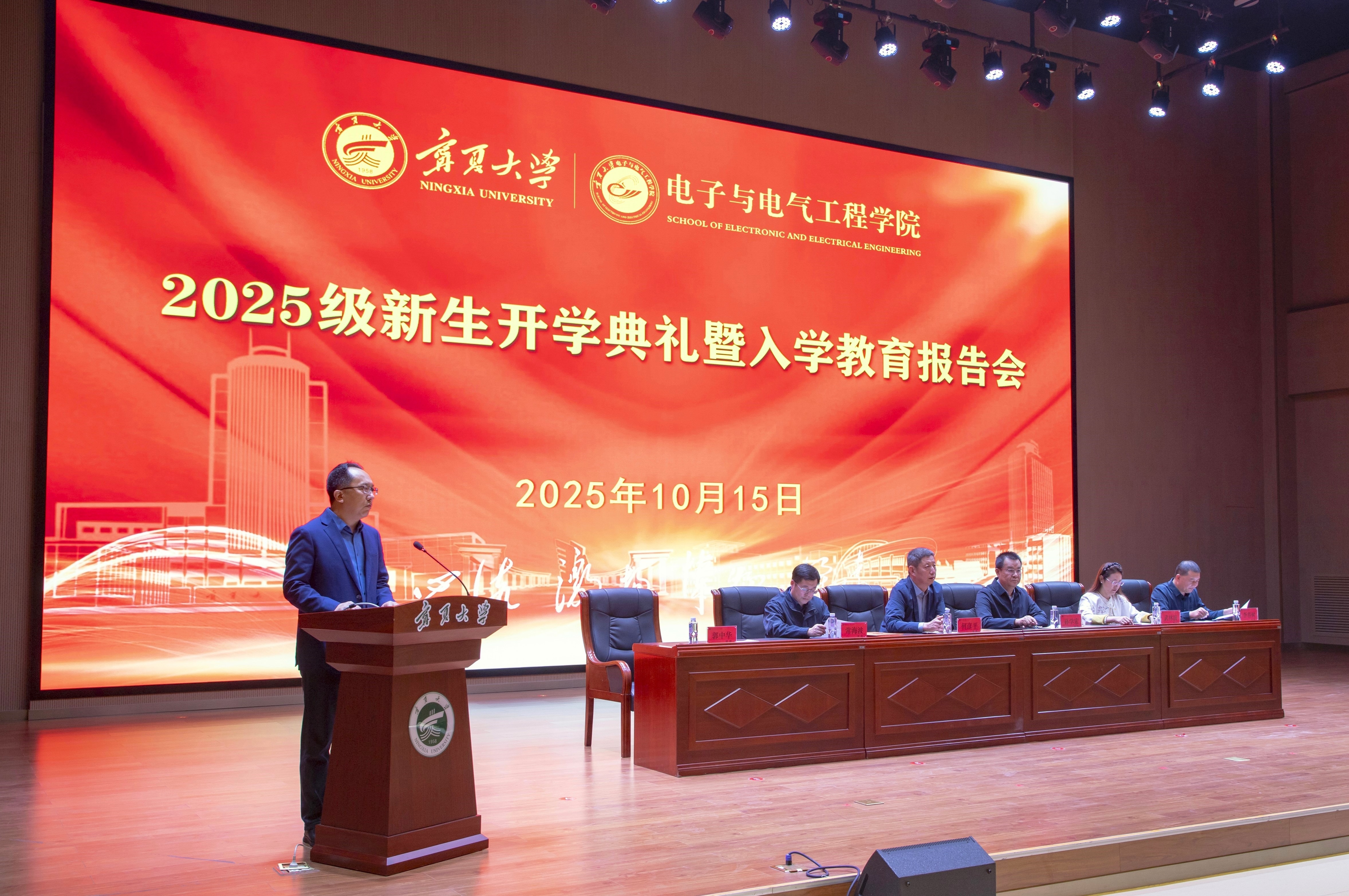 【电院讯 李苗苗/文 陈帅仰、焦浩展/图】秋风送爽,杏坛迎新。10月15日,Happy漫画 在贺兰山校区笃行楼一楼报告厅举行2025级新生开学典礼暨入学教育报告会。来自全国各地的259名新生齐聚贺兰山麓,以电路为舟、代码为桨...